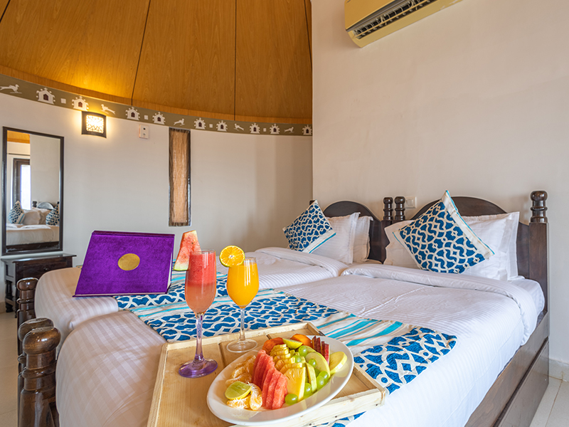 - Rajwadi AC Bhungas: Traditional-style circular huts that reflect the Kutch heritage and are designed using modern facilities and air-conditioning for a comfortable stay.